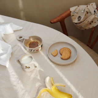 Liewood set za jelo- Napravljen od izdržljivog, visokokvalitetnog silikona, otporan na lomljenje i može se prati u mašini za sudove. Sastoji se od šolje bez poklopca, činije, tanjira i kašike, obezbeđujući da vaše dete bude spremno za svoje prve kulinarske avanture.
