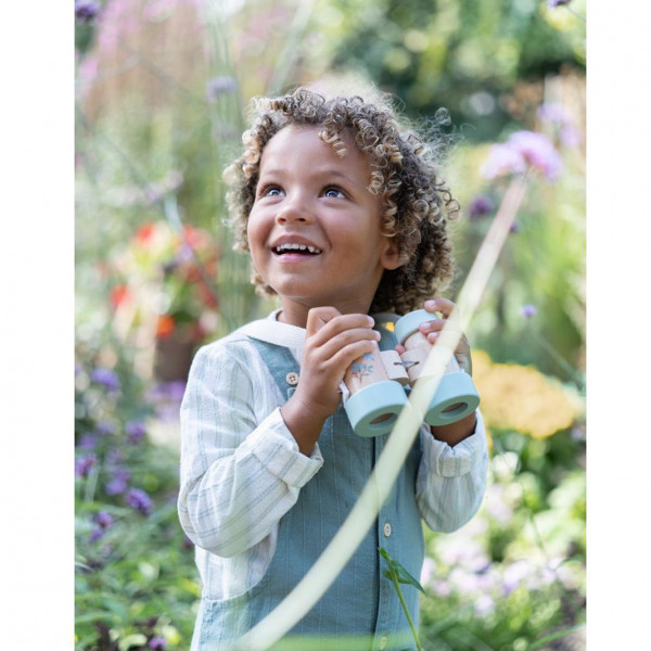 Istraži prirodu uz ove drvene dvoglede! Ukrašeni prelepim bojama i ilustracijama ovi dvogledi svaku avanturu čine uzbudljivom. Zaista uvećavaju i mogu se podesiti prema razmaku između očiju za optimalan vid. Pamučna traka sa čičak-zatvaračem omogućava da dvogledi bezbedno vise oko vrata. Savršeni su za radoznale male istraživače koji žele da otkriju svet oko sebe!