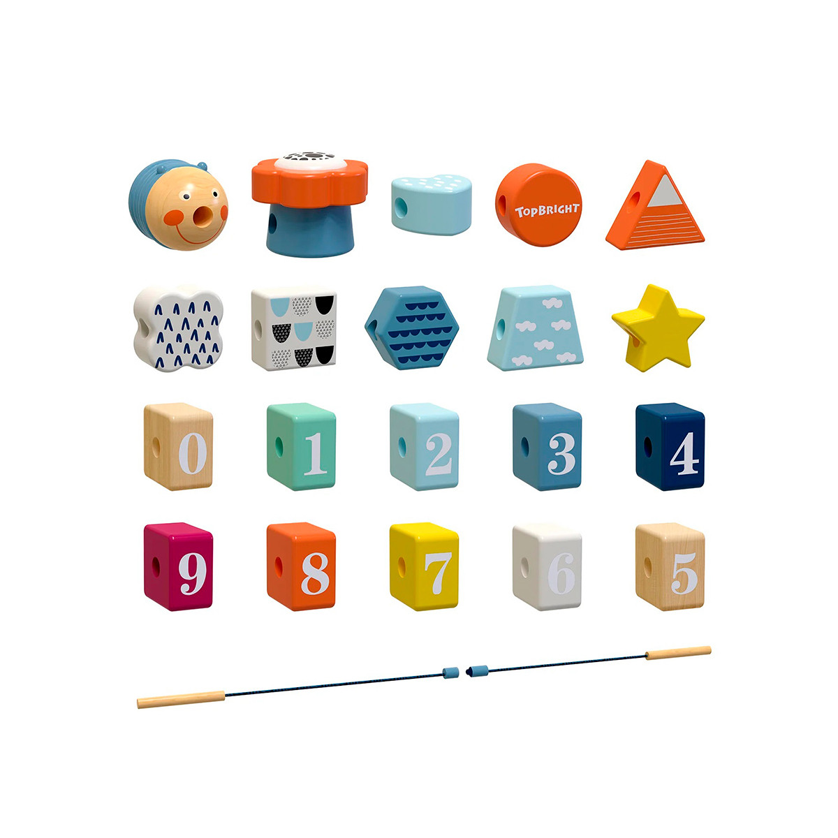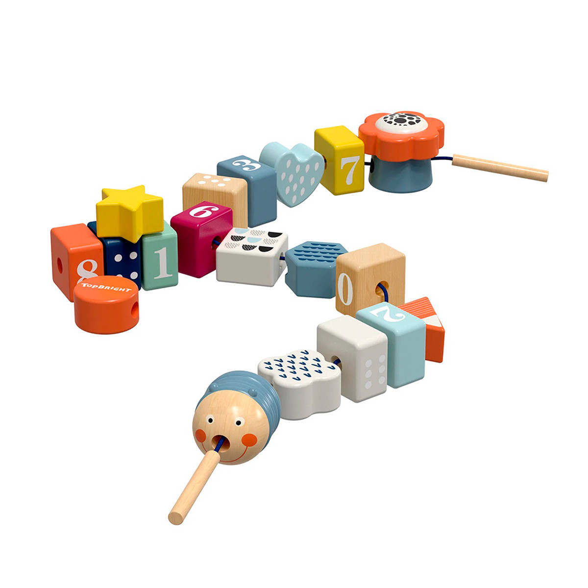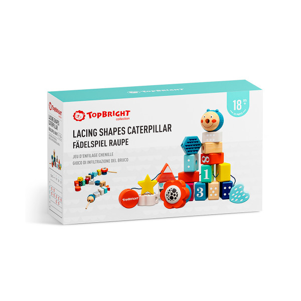 Top Bright edukativna gusenica pruža beskrajnu zabavu i učenje kroz igru. Deca nižu drvene oblike u raznim bojama i oblicima na kanap i posmatraju kako njihova gusenica raste i postaje sve veselija.