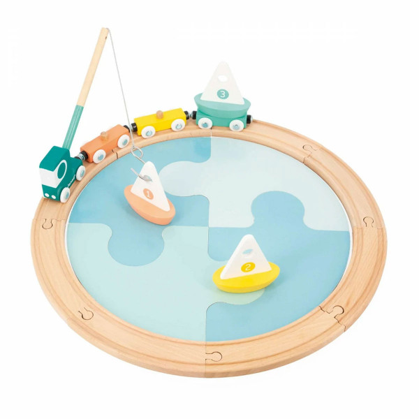 Staza, koja se sastoji od 8 drvenih komada, okružuje površinu vode, stvarajući savršenu scenu za igru. Veliki kamion sa 3 magnetne prikolice strpljivo čeka da podigne ove prelepe čamce. Natovarite ih i krenite u novu avanturu! Štap za pecanje se lako čuva u zadnjem delu kabine kada se ne koristi, što čini ovaj set praktičnim i zabavnim.