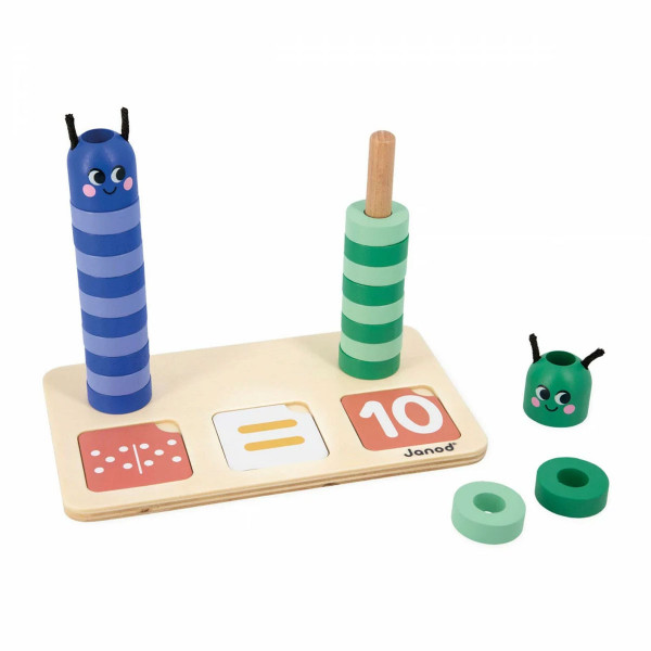 Ova drvena didaktička igračka, namenjena deci uzrasta od 3 godine naviše, omogućava deci da vizuelno i fizički manipulišu brojevima pomoću šarenih kuglica koje predstavljaju telo gusenica.