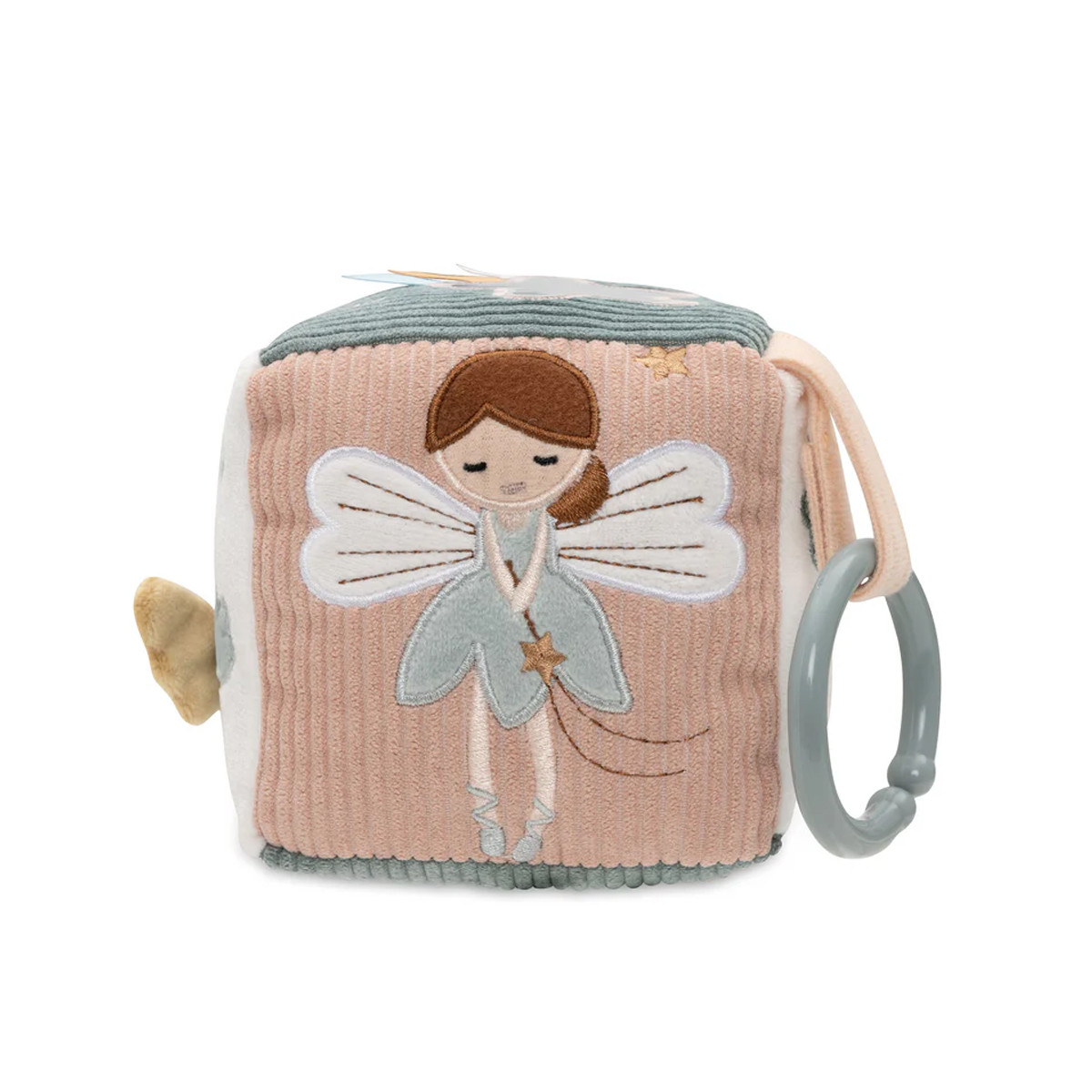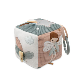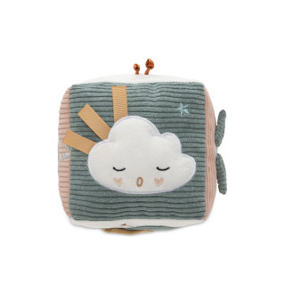 Ova zabavna aktivna kocka puna je šarenih slika, slatkih printova, zanimljivih etiketa i prelepog veza! Naći ćete vesele ptičice, pahuljaste oblake, cveće, zvezdu, a tu je čak i vila Ejmi! Ptičice imaju simpatična mala krila, a končići su prelepo izvezeni, pa vaš mališan može beskrajno da se igra i istražuje. Ova mega zabavna aktivna kocka stimuliše čula vašeg deteta i pruža sate i sate zabave!