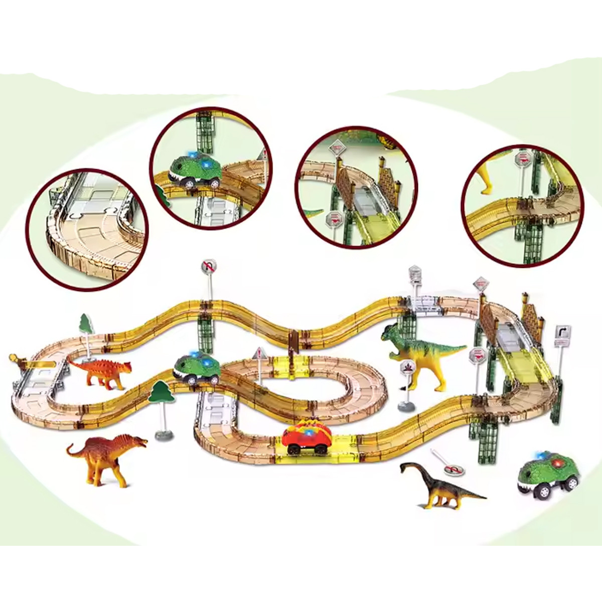 Jungle dino park sa autićima sadrži čak 76 delova koji omogućavaju beskrajnu zabavu. Deca mogu sastavljati svoju stazu za automobile, a zatim ukrašavati park brojnim dekoracijama iz kompleta. Ovaj set razvija maštu, podstiče kreativnost i strpljenje.