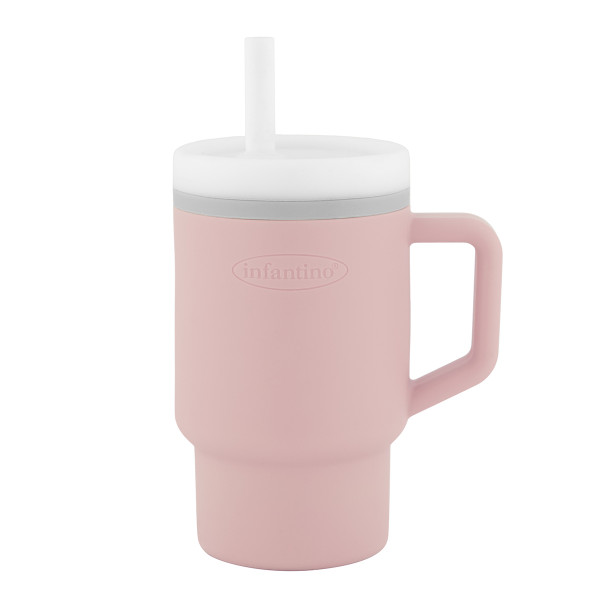 Praktična i moderna čaša za male ruke, napravljena od mekog silikona prijatnog na dodir. Dolazi sa poklopcem i slamčicom, pa je odlična za prve gutljaje bez prosipanja. Laka je za držanje, pogodna za svakodnevnu upotrebu kod kuće i u pokretu.