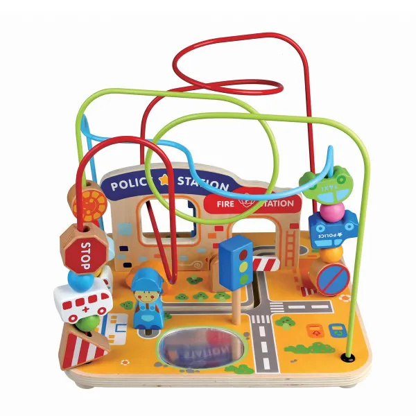 - Lavirint se sastoji iz stabilnog (postolje sa raskrsnicom, policijskom i vatrogasnom stanicom, krivolinijske žice, saobraćajni znaci) i mobilnog dela (automobili, perlice, oblaci, itd.).