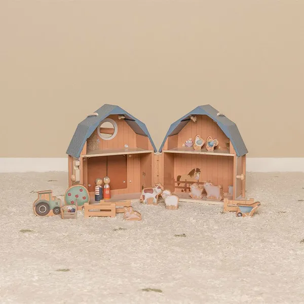 Little Dutch drvena kućica koja se otvara predstavlja predivnu štalu punu uzbudljivih dodataka. Uz ovu štalu dolaze i životinje, alati, ograde i stanovnici farme. Štalu možete zatvoriti koristeći drvenu ručku koja je jednostavna za nošenje. Njen izgled i dodaci podstiču decu na dugotrajnu igru uloga, što ima značajan uticaj na razvoj njihove ličnosti. Dizajn je prilagođen bebama, boje su na bazi vode i izrađena je od prirodnih materijala.