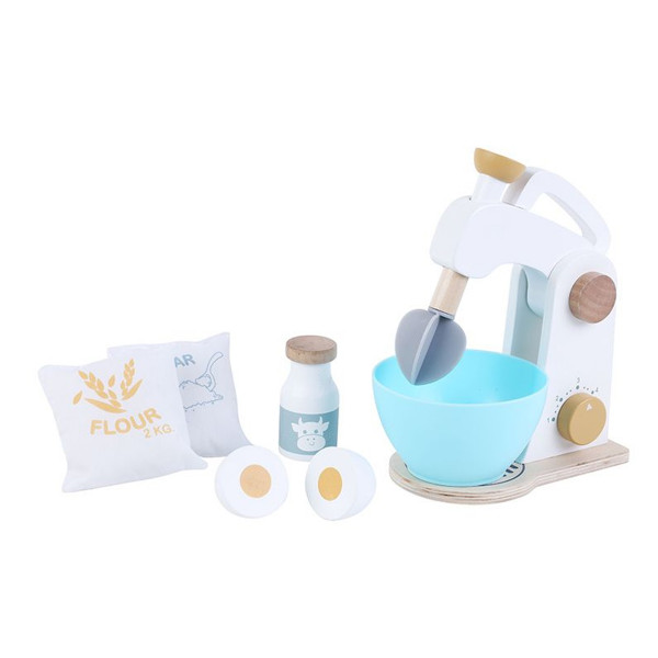 Drveni mikser za decu je savršena igračka za male kuvare i poslastičare u usponu! Ovaj dečji mikser podstiče maštovitu igru, imitaciju odraslih i razvijanje veština koje će detetu koristiti i u stvarnom životu. Uz detaljno izrađene elemente – od posude, jajeta i bočice mleka do džaka sa „brašnom“ i „šećerom“ – mališani mogu osmisliti bezbroj kulinarskih avantura.