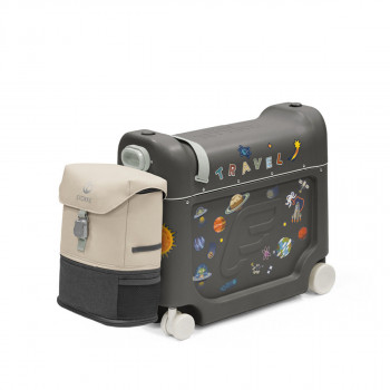 Stokke Jetkids BedBox je jedinstven i jedini kofer za decu koji se produžava sedište u krevet. Nakon što se lampica sigurnosnog pojasa ugasi, možete pretvoriti Jetkids BedBox u udoban krevet u avionu u samo 5 jednostavnih koraka. Ovo osnovno putovanje kombinuje skandinavski stil, dizajn inspirisan avijacijom i praktične karakteristike koje olakšavaju vaše putovanje.