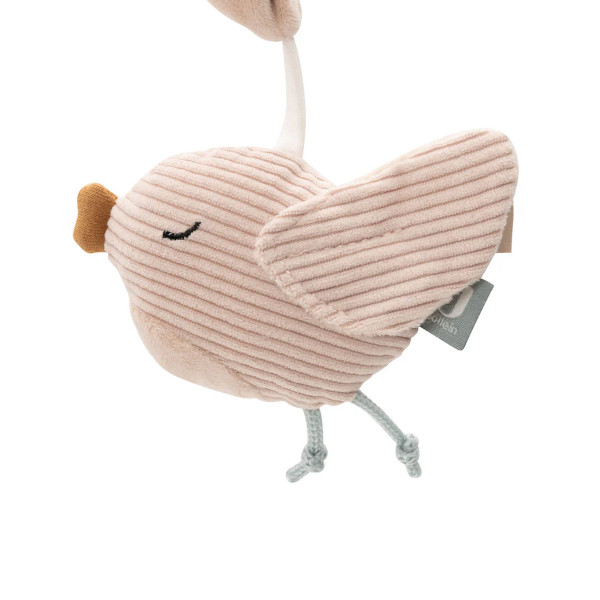 Ovaj slatki lanac za kolica pravi je mali ukras i obezbeđuje sate zabave! Tri simpatične visilice — lala, slatka ptičica i kućica za ptice sa ogledalcem — čine vožnju još zabavnijom za vašeg mališana On The Go. Šuškavi zvuci i vesela zvonca savršeno upotpunjuju lanac za kolica.