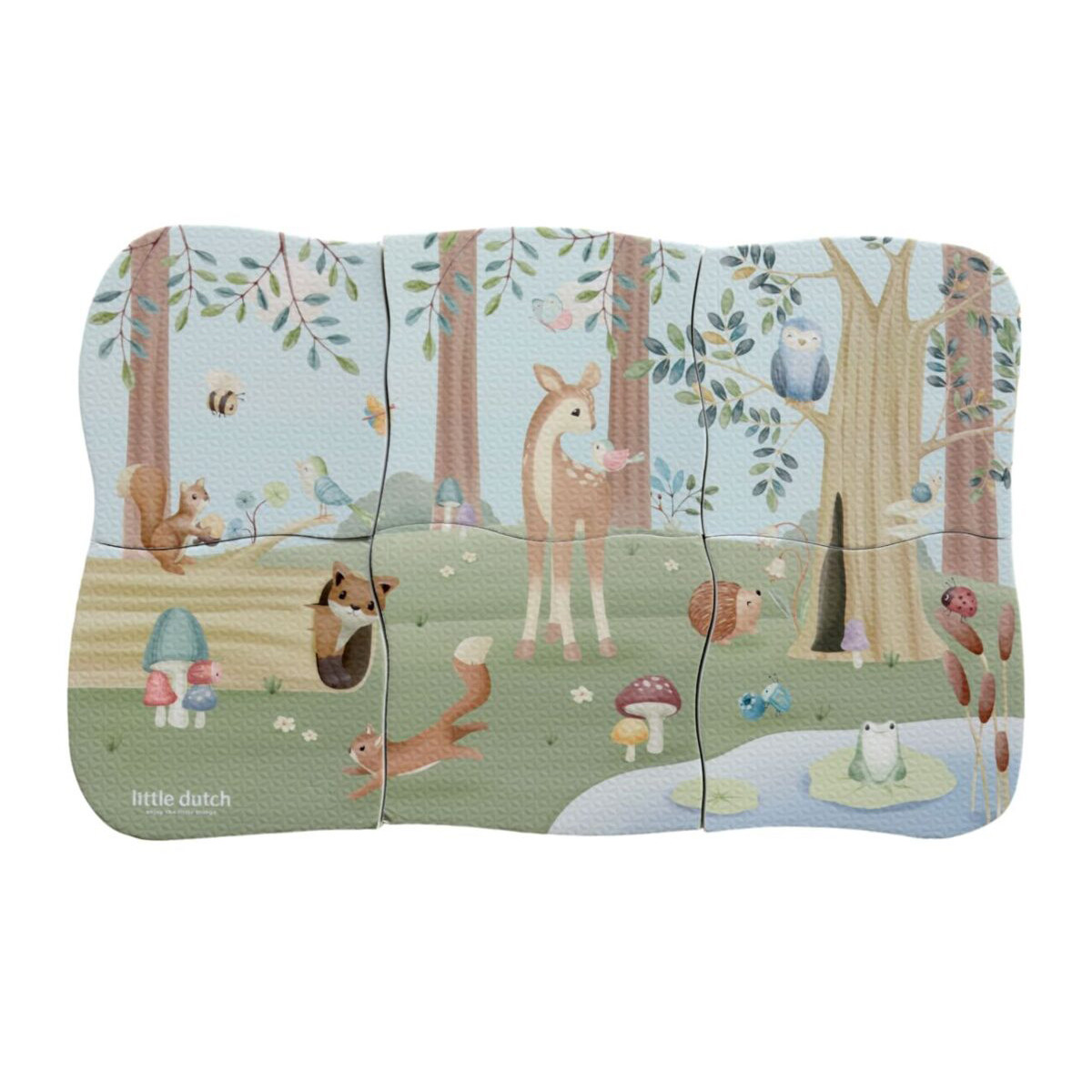 Zabavite se u kupatilu uz ovu veselu penastu slagalicu iz kolekcije Little Dutch! Sastoji se od 6 delova koji zajedno formiraju scenu iz teme Forest Friends. Delovi su napravljeni od pene – navlažite ih i zalepite na ivicu kade ili na pločice!