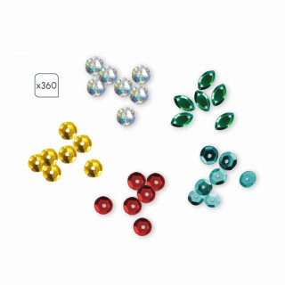 Ovaj komplet sadrži neverovatnih 360 šljokica u različitim oblicima i bojama. Deca mogu birati svoje omiljene motive i ukrasiti ih šljokicama, stvarajući slike koje mogu ponosno prikazati ili pokloniti svojim voljenima. Materijali uključeni u set su karton i papir, što omogućava lako rukovanje i dugotrajnost kreacija.