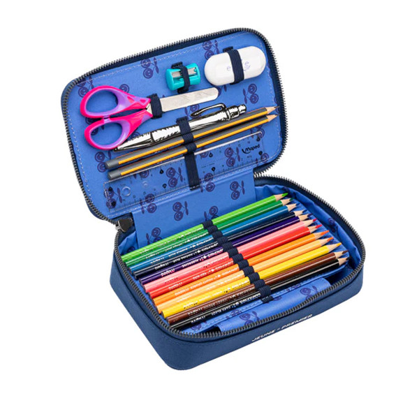 Ova atraktivna pernica iz saradnje Jeune Premier x Maped, sa modernim “Mr. Gadget” motivom, idealna je za školarce koji vole da budu organizovani i uz to drugačije. Dolazi sa dve odvojene pregrade, tako da je sve uredno na svom mestu – spremna za školu, kreativni rad ili putovanja.