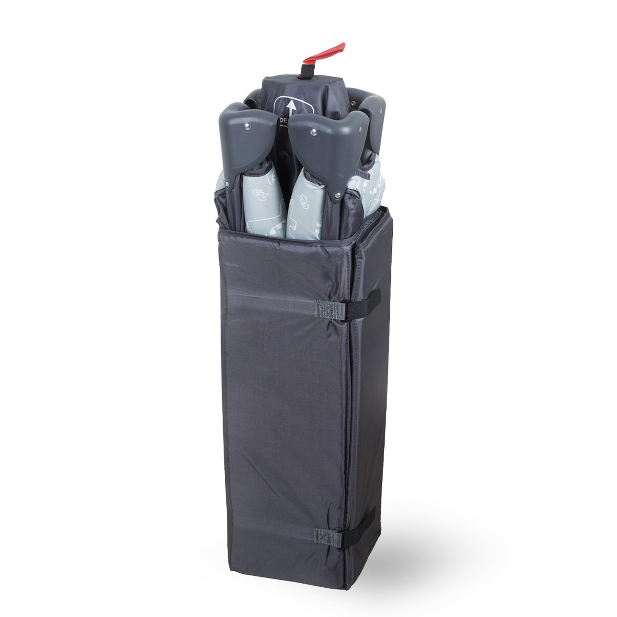 -Moon krevetac ima mehanizam koji omogućava lako rasklapanje i sklapanje na male dimenzije tako da može stati u torbu koja se dobija uz njega i skladištiti ili poneti na kraća ili duža putovanja.