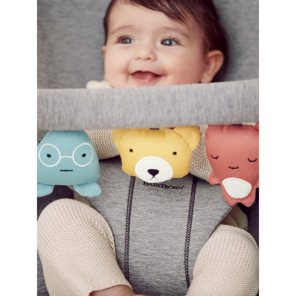 Njeni jarko obojeni oblici privlače pažnju bebe i podstiču igru i radoznalost. Traka sa igračkama lako se postavlja i skida, a odgovara svim BabyBjörn njihalicama.
