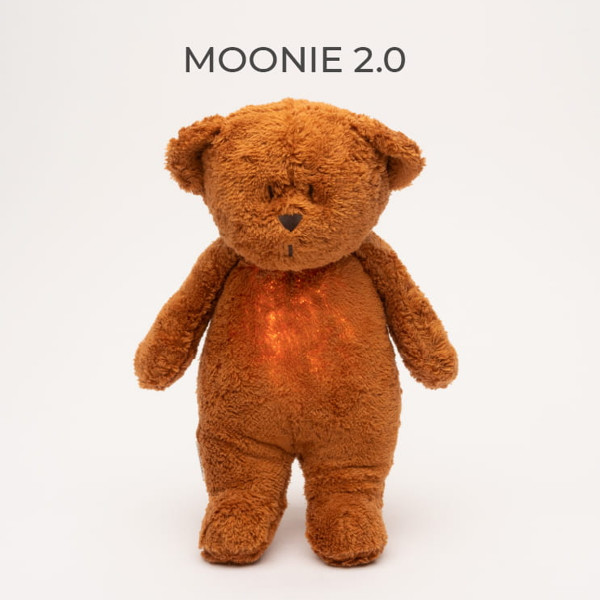 Moonie meda 2.0 u potpunosti izrađen od sertifikovanog organskog pamuka sada sa novom funkcijom- snimanje glasa roditelja: Roditelji mogu snimiti svoj glas, što dodatno umiruje bebu i stvara poznatu atmosferu, čak i kada nisu prisutni.