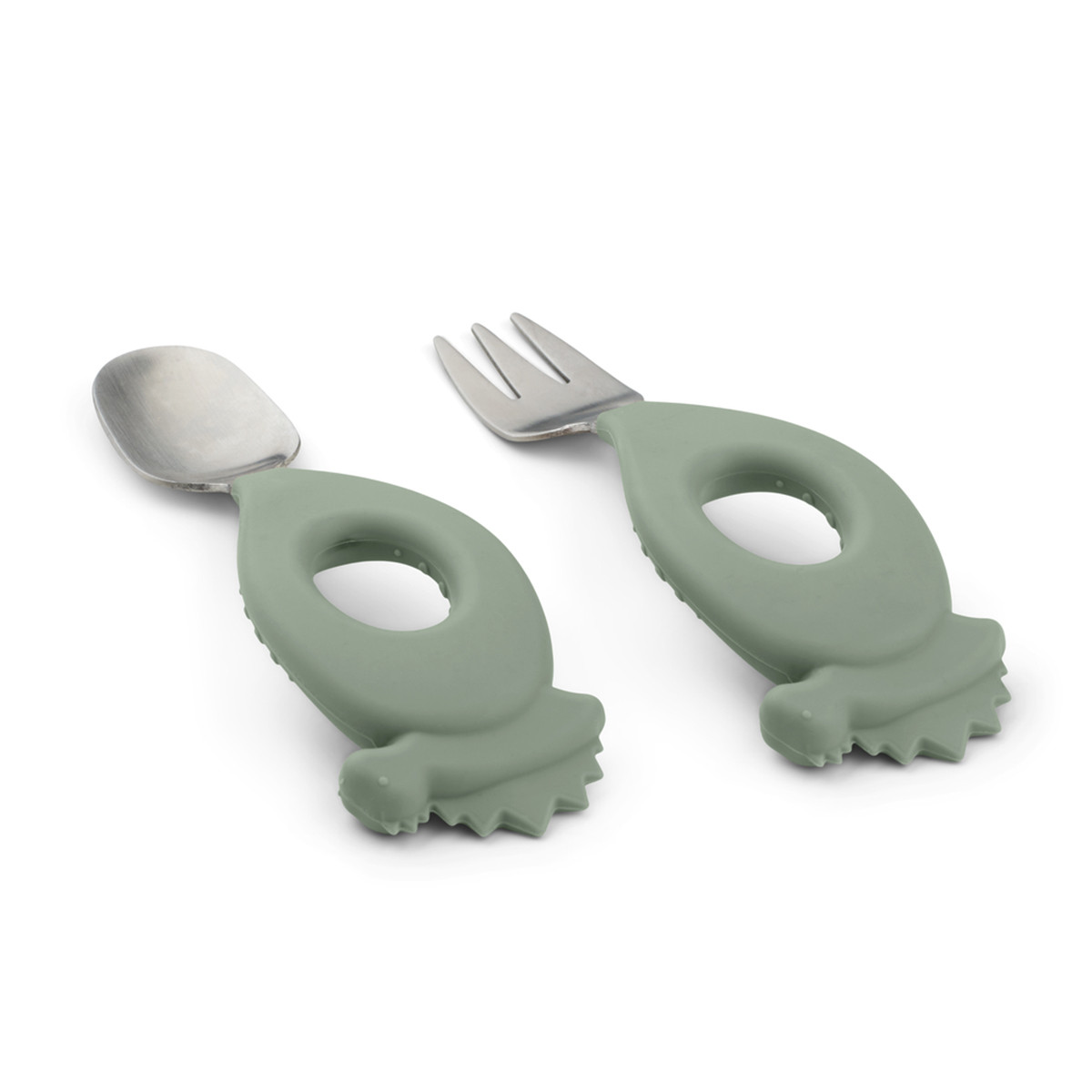 Dve šarene kašičice sa prijateljskim izrazom lica učiniće svaki obrok zab...