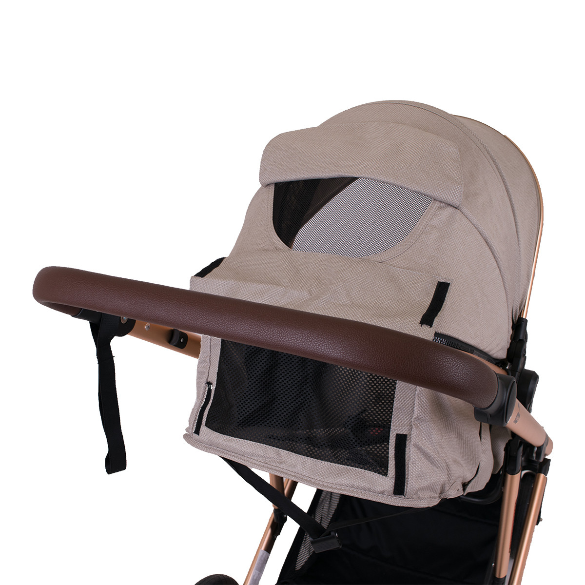 -Tenda kolica, koja se sastoji iz tri dela, natkriva veliki deo kolica i na taj način štiti bebu od sunca.