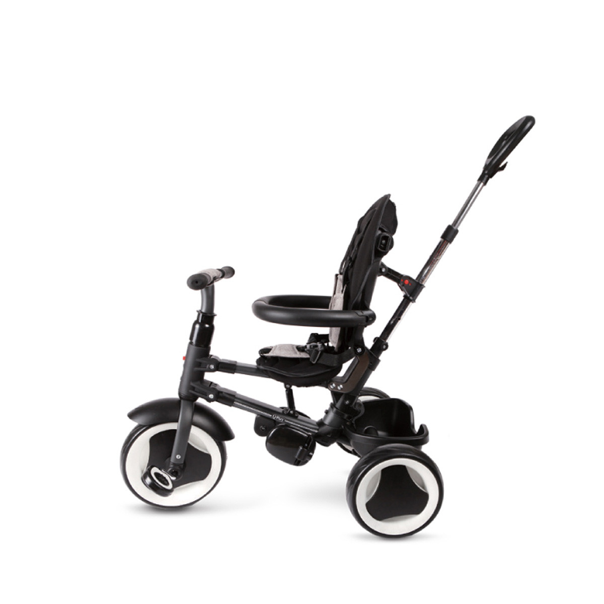 Roditelji imaju potpunu kontrolu nad triciklom pomoću teleskopske ručke podesive visine, idealno za šetnje po parku i komšiluku.Tricikl postaje trening alat za učenje okretanja pedala. Dete razvija motoričke veštine, ravnotežu i samopouzdanje, dok roditelj kontroliše kretanje zahvaljujući funkciji "free-wheel".Kada dete postane samostalno, roditeljska ručka i zaštitni štitnik se uklanjaju, pretvarajući tricikl u nezavisno prevozno sredstvo za decu.
