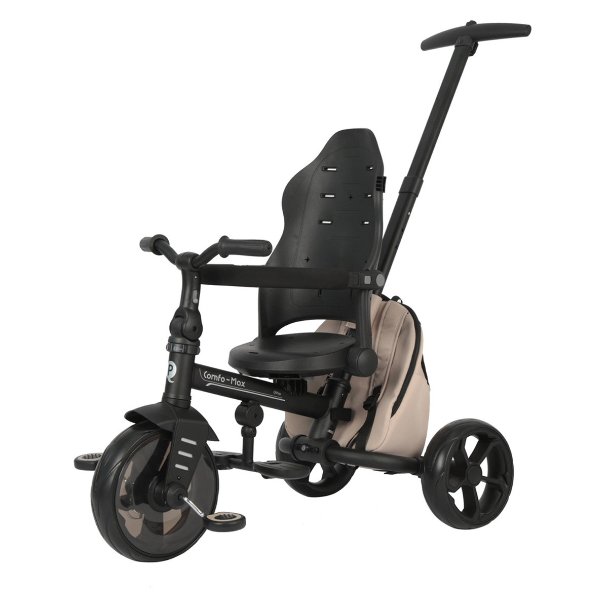 Novi Qplay tricikl Comfo Max je luksuzan funkcionalan tricikl koji će šetnje sa vašim mališanom učiniti posebnim. Novi dizajn sa sklopivim čeličnim ramom i novim stilizovanim naslonom će deci pružiti dodatnu udobnost, a roditeljima lako upravnjanje. I Eva točkovi su takođe novi, a prednji točak ima opciju zaključavanja. Lako sklapanje i odvojivost delova čini Comfo Max idealnim triciklom i kada menjate destinaciju za šetnju ili idete na putovanje.
