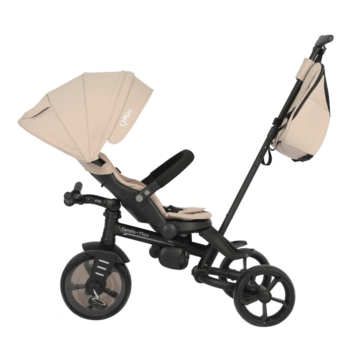 Novi Qplay tricikl Comfo Max je luksuzan funkcionalan tricikl koji će šetnje sa vašim mališanom učiniti posebnim. Novi dizajn sa sklopivim čeličnim ramom i novim stilizovanim naslonom će deci pružiti dodatnu udobnost, a roditeljima lako upravnjanje. I Eva točkovi su takođe novi, a prednji točak ima opciju zaključavanja. Lako sklapanje i odvojivost delova čini Comfo Max idealnim triciklom i kada menjate destinaciju za šetnju ili idete na putovanje.