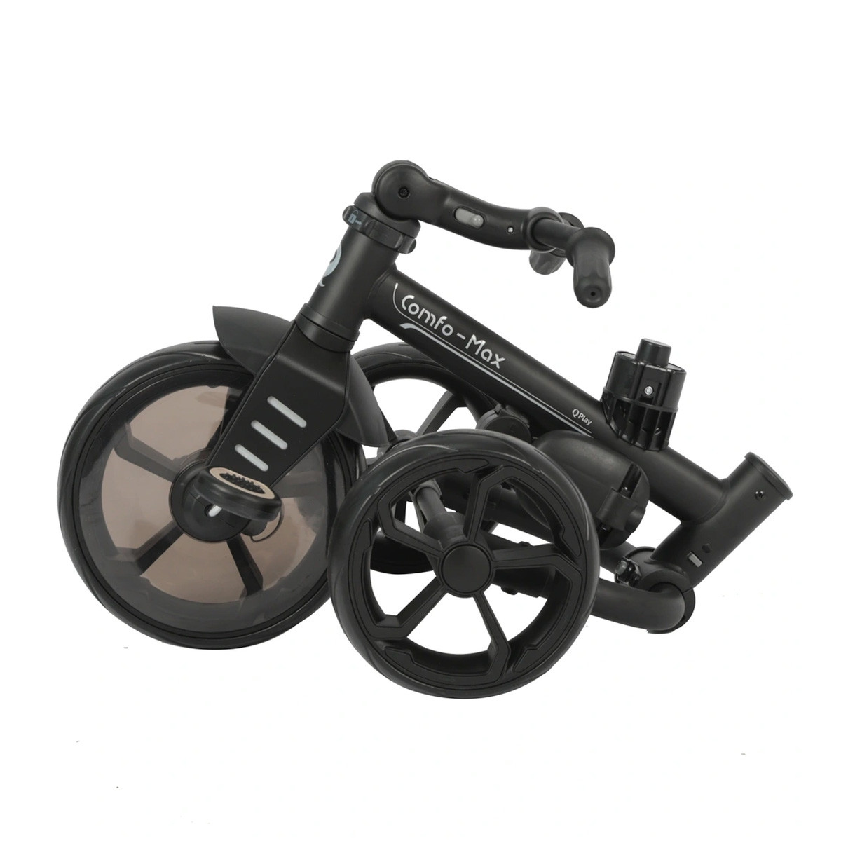 Novi Qplay tricikl Comfo Max je luksuzan funkcionalan tricikl koji će šetnje sa vašim mališanom učiniti posebnim. Novi dizajn sa sklopivim čeličnim ramom i novim stilizovanim naslonom će deci pružiti dodatnu udobnost, a roditeljima lako upravnjanje. I Eva točkovi su takođe novi, a prednji točak ima opciju zaključavanja. Lako sklapanje i odvojivost delova čini Comfo Max idealnim triciklom i kada menjate destinaciju za šetnju ili idete na putovanje.