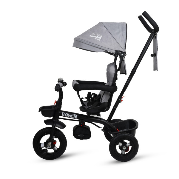 3) Od 24 meseca: skida se pomoćni oslonac za noge i dobija se tricikl sa pedalama, kojim upravlja dete ili roditelj;