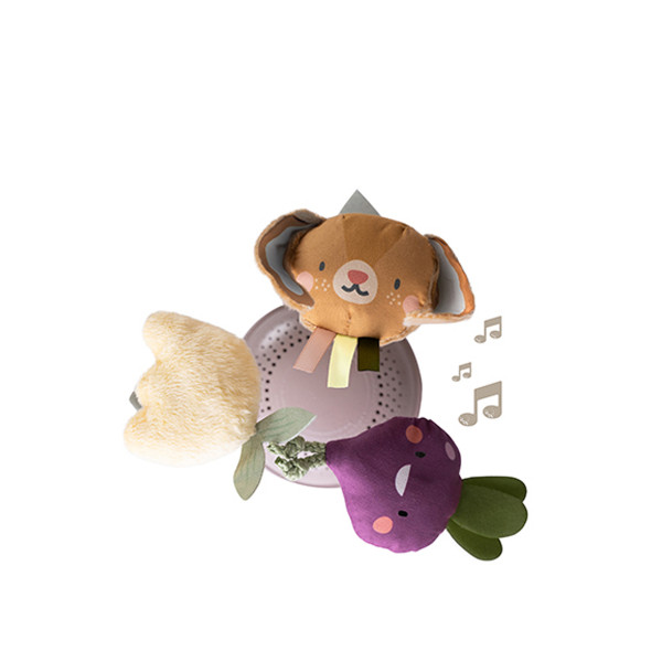 Uključuje 3 viseće igračke iz “Urban Garden” kolekcije: