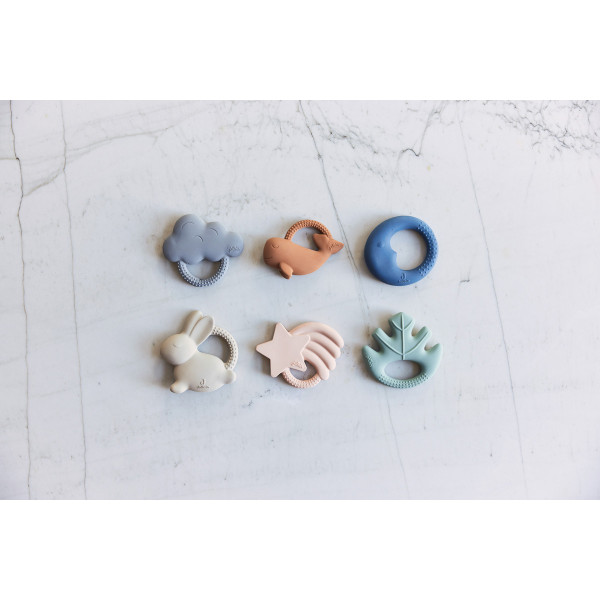 Vaša beba može staviti glodalicu za zube u usta da sisa i grize. Kada niču zubi, može biti izuzetno lepo, staviti glodalicu za zube u frižider pre upotrebe (nikada u zamrzivač). Hladan prsten za zube blago umrtvljuje neprijatan osećaj na desni. Oblik je lak za vašu bebu da uhvati i drži. Izbijanje zuba može učiniti da se vaša beba oseća malo loše. Nije iznenađujuće, naravno: zub se probija kroz desni i to boli ili ga svrbi. Često se može videti u ustima: tvrda kvrga i crvene ili otečene desni. To je težak posao za vašu bebu! Da malo ublažite bol, lepo je da vaš mališa nešto ugrize. Ovo ublažava pritisak na desni kada zubi izlaze. Ovaj prsten za zube od prirodne gume može da se koristi za sve uzraste i bezbedan je za vašu bebu od 0 meseci.